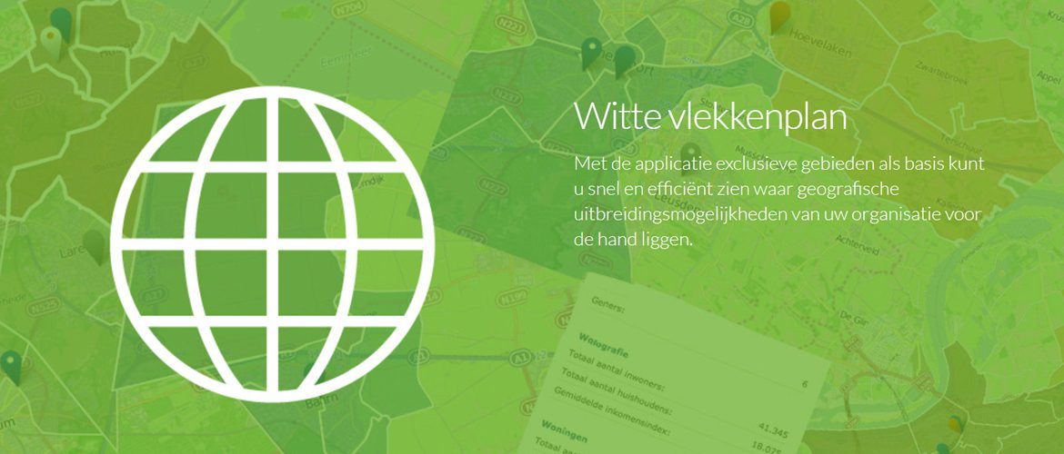 Als u exclusieve en/of niet-exclusieve gebieden wilt toebedelen aan een franchisenemer dan kunt u die met deze on line tool eenvoudig vastzetten. Ook zijn hier alle demografische gegevens van de betreffende postcodegebieden vermeld. Vervolgens kan een print van worden gemaakt die aan de franchiseovereenkomst kan worden gehecht. Hiermee voorkomt u dat één gebied wordt toegekend aan twee franchisenemers en het sluit ieder misverstand hierover uit.