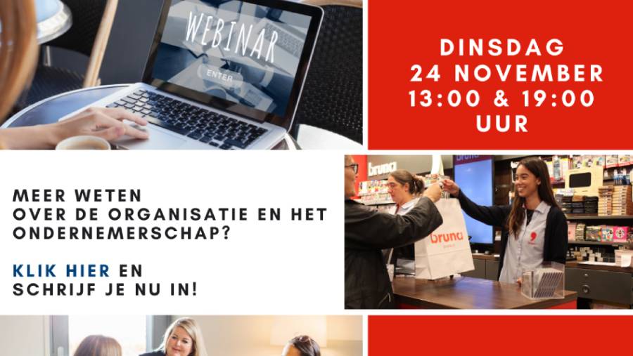 Op dinsdag 24 november om 13.00 uur en om 19.00 uur organiseren Bruna en Scout een live-webinar over het franchise ondernemerschap bij Bruna.