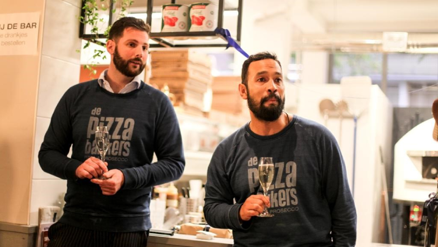 Drie weken geleden openden de boezemvrienden Rag Ririn (38) en Roy Geneugelijk (37) hun eigen vestiging van De Pizzabakkers in de wijk Schiebroek in Rotterdam. Rag was leraar op een basisschool en Roy was jarenlang Les Clef’s do’r Hotel Conciërge / gastheer van het chique Hotel l’Europe in Amsterdam.