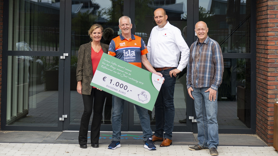 Dit jaar mocht de winnaar tevens een cheque overhandigen aan een regionaal goed doel naar keuze. Voor de nummer één betekent dit een bedrag van € 1.000,-. Miranda van der Waay dacht direct aan kennis Chris de Heij uit Reeuwijk: “Hij heeft vorig jaar de diagnose ALS gekregen. Om zoveel mogelijk geld op te halen voor onderzoek naar deze ziekte doet hij samen met 32 vrienden en familie mee aan Tour du ALS. Zij beklimmen op 29 mei de Mont Ventoux. Een fantastisch doel, dus wij vinden het heel fijn om Chris met deze bijdrage te steunen.”