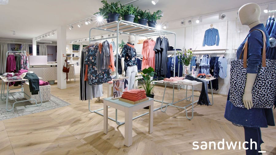 Sandwich is een gerenommeerde internationale damesmode formule. Een speciaalzaak met als kenmerkende stijl Casual Contemporary with Personality. Sandwich wordt ontworpen voor de moderne vrouw met gevoel voor stijl.
