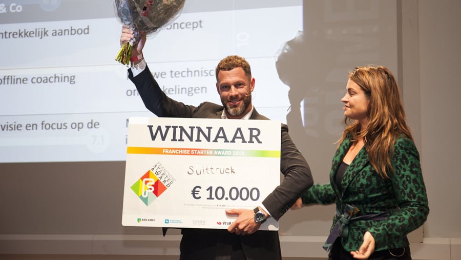 Suittruck wint een prijs ter waarde van € 10.000. De komende periode zal Vlaming ondersteuning krijgen van FLYNTH, Ludwig & Van Dam advocaten, VISMA Software, ABN AMRO en De Nationale Franchise Gids om zijn formule naar een hoger niveau te tillen en een vliegende start te maken in franchise.