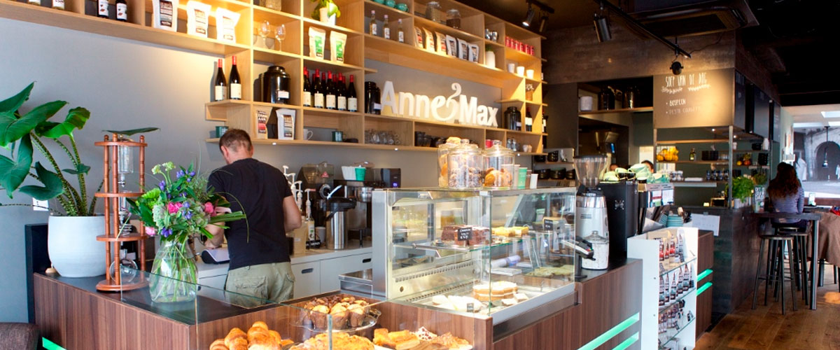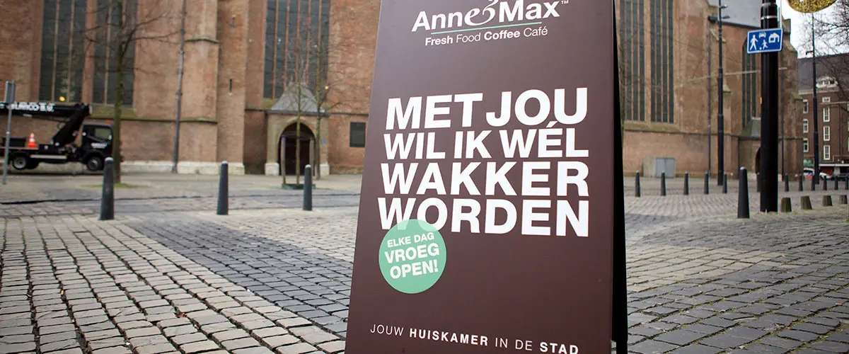 Anne&Max staat bekend als een huiskamer in iedere stad, waar gasten zich van ’s ochtends tot het einde van de dag prettig voelen. Je kunt bij Anne&Max de krant lezen in een luie stoel, praten aan de leestafel, werken of gewoon aan de bar een kop koffie drinken. Daarom zijn de vestigingen van Anne&Max zo ingericht dat er voor gasten alleen, maar ook voor groepjes een altijd wel een aangename plek is om te zitten.