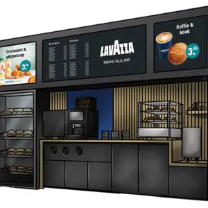 De recent ontwikkelde Foodservice Wall bestaat uit een intelligente modulaire oplossing, gericht op een attractief en doelgericht foodservice-aanbod, koffie, dranken en digitalisering. De Foodservice Wall is duidelijk weergegeven voor bezoekers ...